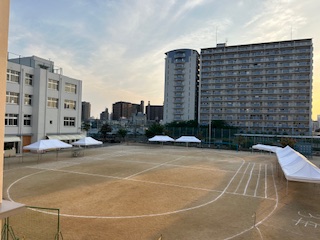 運動会に向けて、児童の下校後、テントを設置しました。一気に雰囲気が盛り上がってきました。