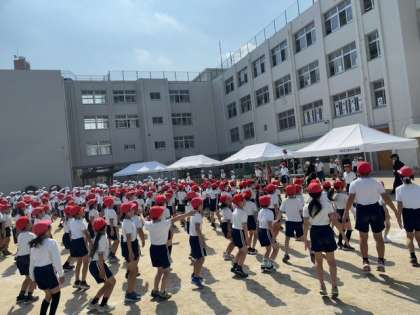 運動会にむけた全体練習も2回目になり、小学校での初めての運動会を控える1年生も少しずつ慣れてきました。