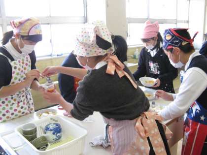 本年度最後の調理実習は、5年生のフルーツヨーグルト作りでした。この日のために、家でりんごの皮むきの練習をしてきたという子が、なかなかあざやかな手つきで、皮をむいていました。