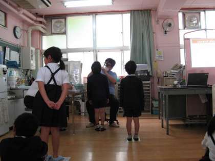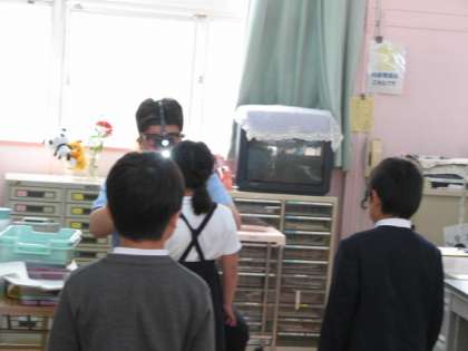 4月から6月にかけて、いろいろな検診が行われています。この日は2年生の歯科検診がありました。待っている子どもたちは、パソコンで検診の受け方や注意を見るというICT機器を活用した検診風景に時代の流れを感じました。