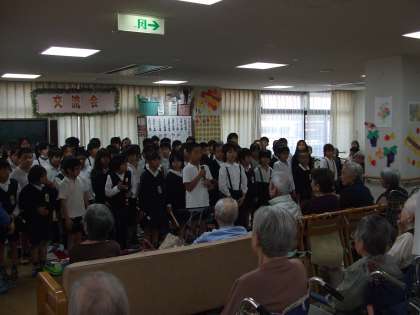 11月6日(水)・8(金)と、3年生が「ふれあいセンター」を訪問しました。地域の方々との交流学習の一環で、センターのお年寄りの方々と、歌や体操をしたり、いろいろな会話をしたりしました。また、心をこめて書いたお手紙も手渡しして、とても喜んでいただけました。初めは緊張していた子どもたちでしたが、センターの方々の温かいまなざしに包まれ、みんなとても優しい表情で交流をしていました。
