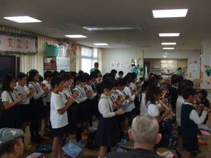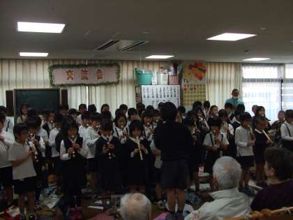 写真は、「初めの挨拶」と「合唱&リコーダー演奏」の場面です。