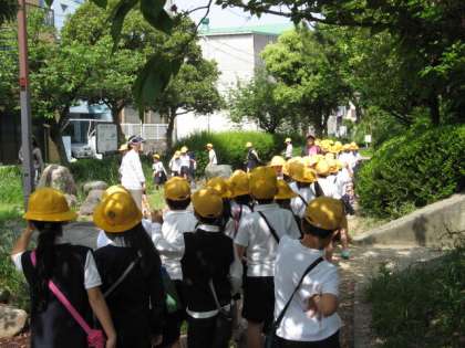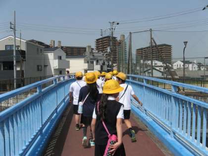 1年生・2年生・3年生と毎年、どんな建物が校区内にあるのか、公園はどこか、安全に気をつけないといけないのはどこかなど、校区を歩いて学びます。