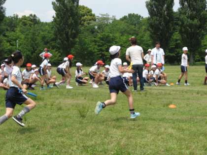 5年生3クラスで、澄んだ青空のもと、広場でミニ運動会を行いました。長縄跳び、ドッジボール、リレーと3クラスで競いながら、力一杯運動をしました。クラス対抗となると、自然と力が入ります。