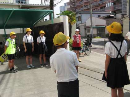 登校時に代表委員会のメンバーが何人かずつ、南門に立ち、集団登校してくる子どもたちと挨拶を交わす活動がありました。先生が南門に立っているよりも、ずっと大きな声で挨拶を返している子どもたちです。