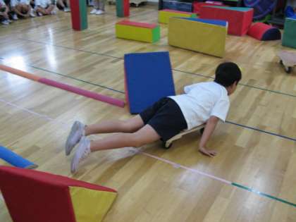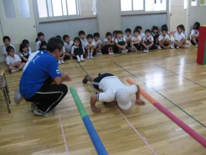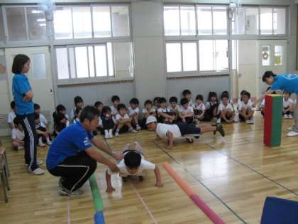 たんぽぽ学級を1年生の子どもたちに知ってもらい、交流を深めようと、たんぽぽ学級に来ている子どもたちと、1年生が交流会を持ちました。一緒に話を聞いたり、たんぽぽ学級に来ている上級生に模範演技をしてもらったりしました。