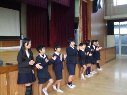 12月4日(水)に1年生と6年生のペア学年集会をおこないました。集会委員の説明のあと、音楽にのってゲームをしながら交流を深めました。