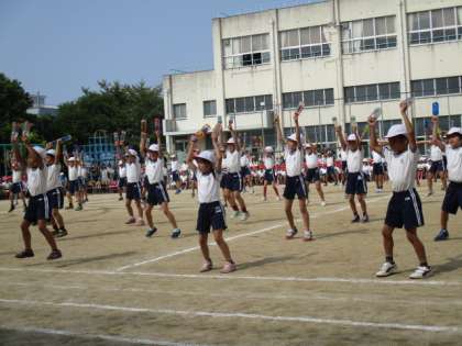 3年生はふれあい玉入れ、「和〜放出太鼓〜」、徒競走、つなひきに出演しました。地域の老人会の皆様と楽しく玉入れをしたり、ペットボトルを持って、力強く踊ったりしました。つなひきも、顔を真っ赤にしながら、力一杯引っ張っていました。