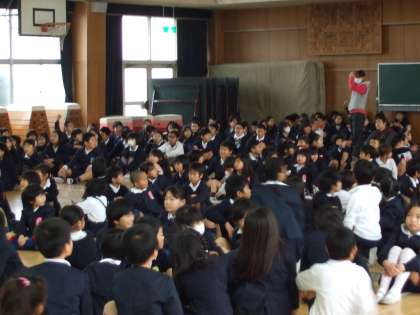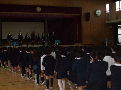 写真2 今週の担当の集会委員がダンスで曲を表現します。