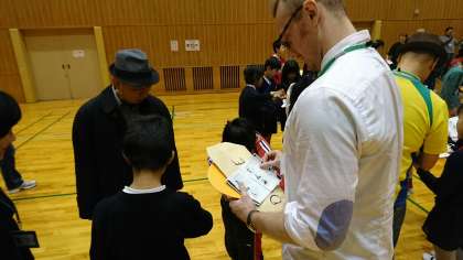 カードづくり、RingToss等、色々なブースに分かれていましたが、本校のC-NETのMathew Galeさんを見つけた時には、子どもたも大喜びでした。