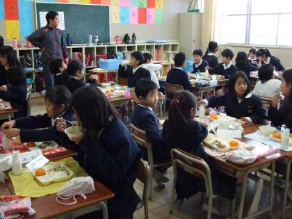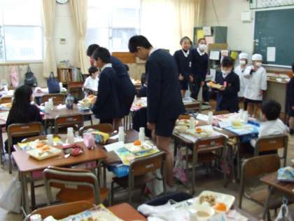 2年生と4年生、1年生と6年生、3年生と5年生が交流し、楽しい給食時間を過ごしました。