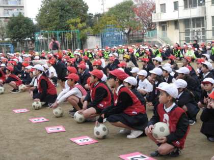 縦割り班活動で、ボール送りゲームをしていました。各班で、うまくチームワークをとって、ボールを送っていきます。1年生から6年生までいろんな子がチーム内にいる中、高学年がリーダーシップを発揮して、チームをまとめ、ゲームを楽しんでいました。