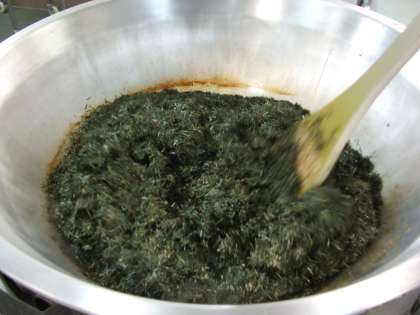 のりのつくだ煮は、きざみのり、かつお節、しいたけを調味料で煮てつくりました。