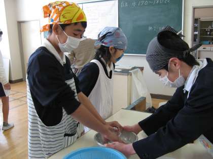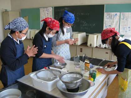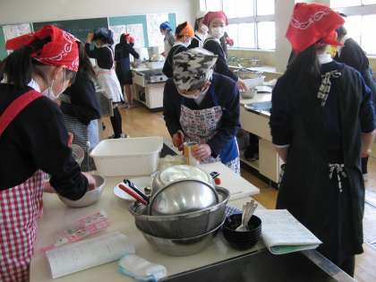 6年生たちが調理実習で、白玉だんご作りをしました。