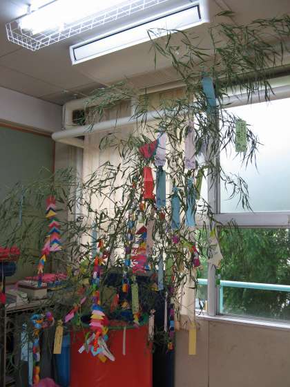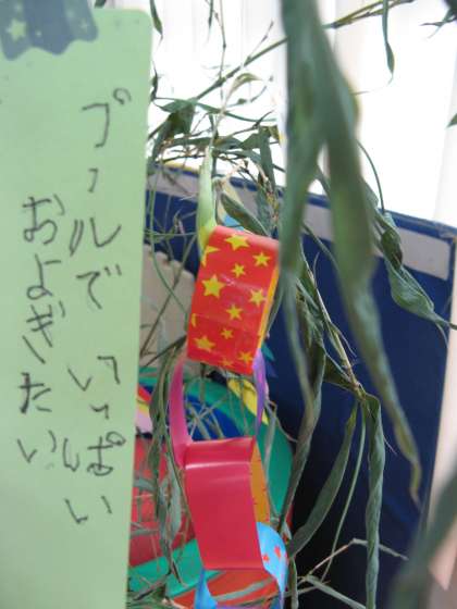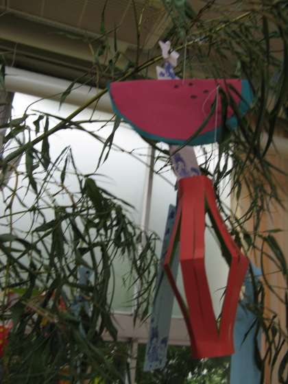 みんなで楽しくかざりを作り、願い事を書きました。できあがった大きな笹を見て、大喜びでした。