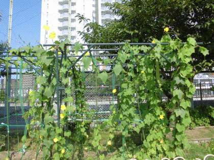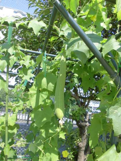 たくさんの野菜や花が実っている学習園ですが、大きなへちまができていました!!たくさんの花が咲いているので、これからまだまだ実ができそうです。