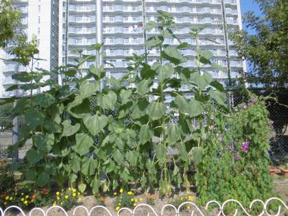 ひまわりも背が伸びて、きれいな花が咲くまでもう少し!!