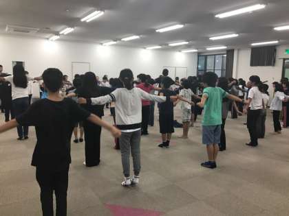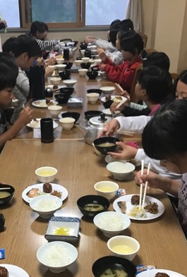6時に起床。玄関前で体操をした後、朝食をとりました。
