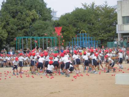 1年生は、初めての運動会。 かけっこ、玉入れ、ダンスを踊ったよ。