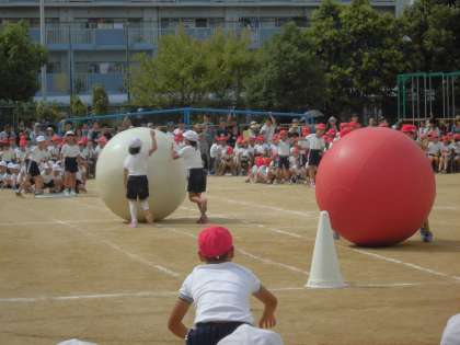 2年生は、かけっこに大玉ころがし、ダンスをしたよ。