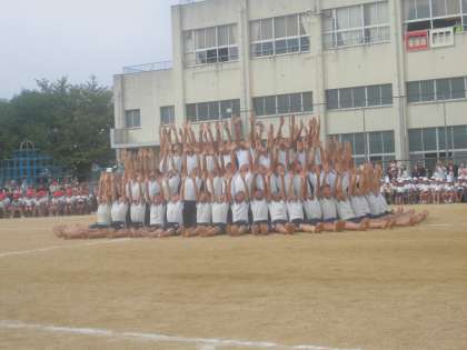 6年生は、かけっこ、リレー、騎馬戦、組体操をしたよ。