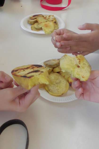 2年生がおいもパーティを実施しました。おいもは、もちろん校外学習で汗をたくさんかいて掘ってきたものです。