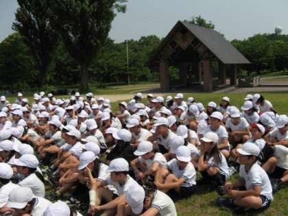 山田池公園はとても広い公園です。荷物を木陰に置いて、少し休憩した後はさぁ、ミニ運動会の始まりです。