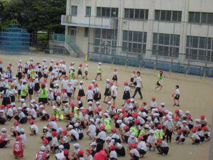 たてわり班で並んで校舎を歩くのは初めてでしたが、班長の6年生を中心にしっかりと列を作って歩くことができました。