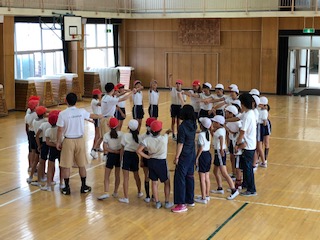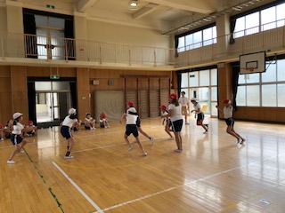 大阪エヴェッサのコーチが6年生にバスケットボールを指導しに来てくださいました。