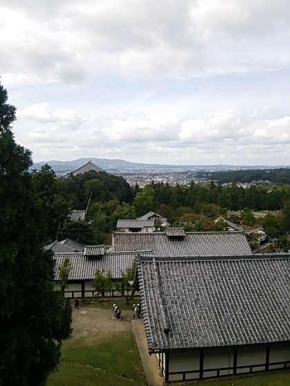 石段をのぼると、二月堂から奈良市街が一望できます。先ほど見学した大仏殿もはっきり見えます。