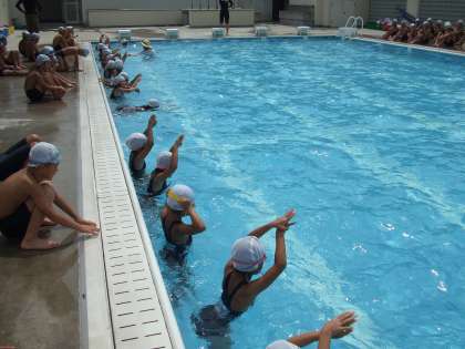 元気にプール開放にやってくる子どもたち。先生の話をしっかりと聞いて、練習に励んでいました。最後は25メートルに挑戦です。
