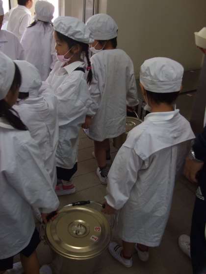 5月からは、自分達で給食室へ給食をとりに行き、配膳もがんばっています。