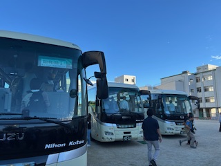 さわやかな秋晴れとなりました。6年生は、今日から一泊二日の修学旅行です。元気に出発しました。