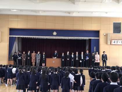 今年度、本校に赴任してきた教職員の紹介も静かに聞くことができていました。