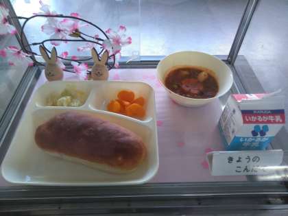 今日の献立はパン・牛乳・ビーフシチュー・キャベツのピクルス・みかん(缶)です!
