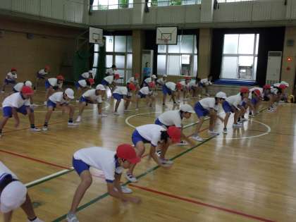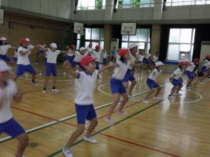 5年生が運動会に向けて、ゲストティーチャーに来てもらって、ソーラン節に取り組み始めました。来週、もう1回きていただく予定です。すばらしい演技を期待しています。