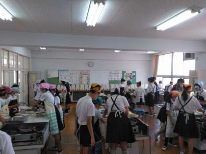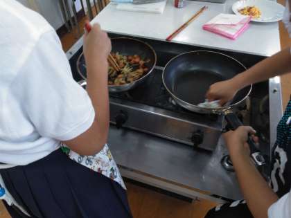6年生がスクランブルエッグや野菜炒めを作っていました!
