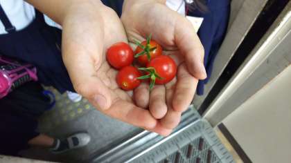 そろそろ収穫時のものもあるようで、今日はトマトが収穫できました。