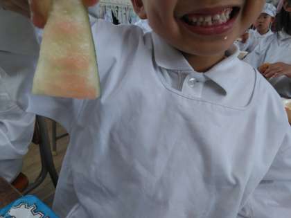 今日の給食にスイカがでてきました。