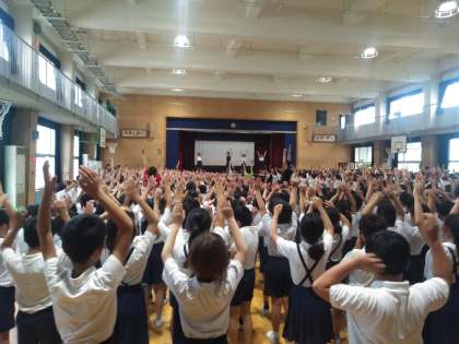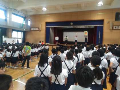 今日の児童集会はみんなで歌を歌いました。
