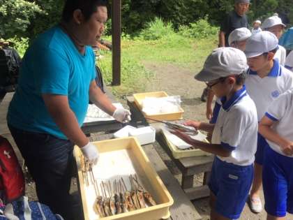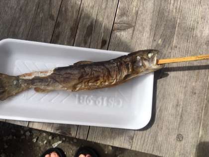 捕まえたイワナは、塩焼きにして