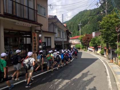 眩しい日差しの中、宿舎から御手洗橋に向かって出発しました。