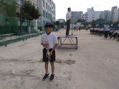 今日の児童朝会で表彰され、