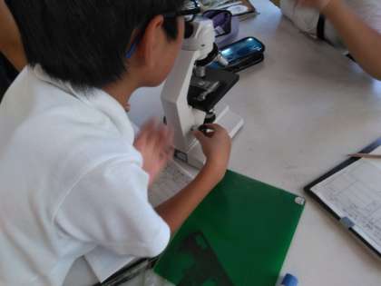 顕微鏡を使って学習をしていました。