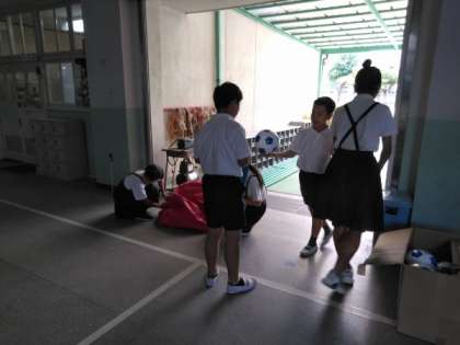 大玉やボールの空気入れの手伝いをしてくれていました。