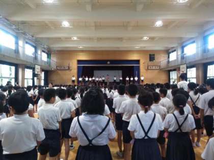 今日の児童集会は、運動会の歌をみんなで歌いました!