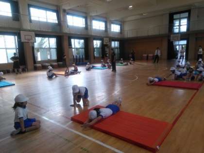 今日は、2年生がマット運動の学習をしました。