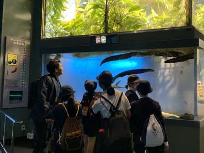 水族館の中を見学しています。
