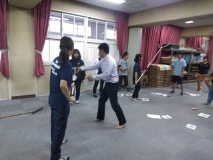 城東警察の方にきていただいて不審者対応訓練を行いました。
