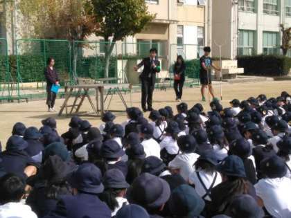 不審者が学校に入ってきたときの対応訓練を行いました。城東警察から警察官の方がきていただき、丁寧にご指導くださりました。